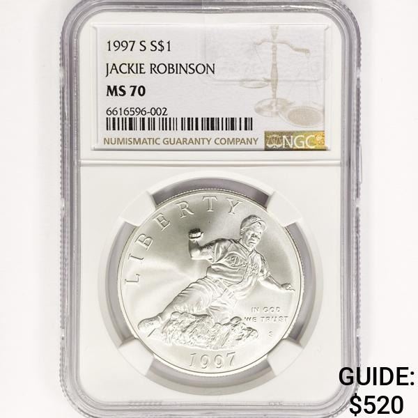 1997-S J. Robinson Silver 26.73g Dollar NGC MS70