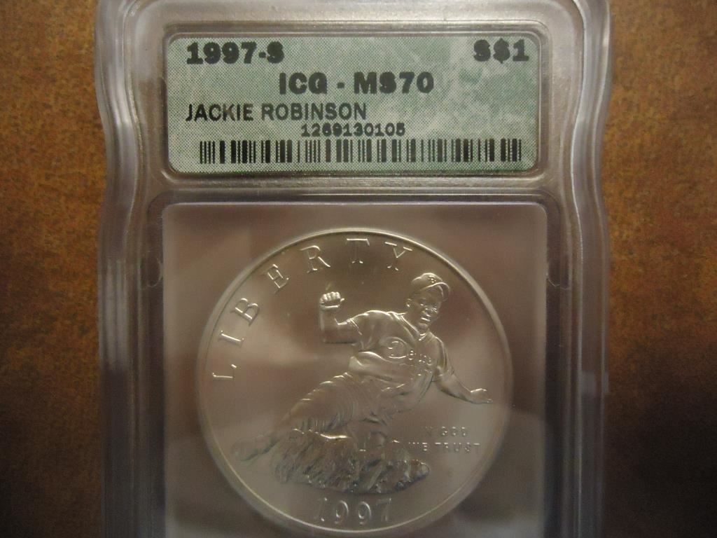1997-S JACKIE ROBINSON SILVER DOLLAR ICG MS70