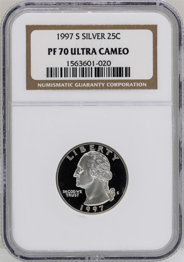 One 1997-S Washington Silver Proof Quarter Coin NGC PF70 Ultra Cameo. NGC Certified.