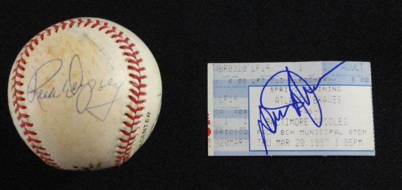 DAVY JOHNSON on SWEET SPOT ( and ON TICKET) plus RICK DEMPSEY & 3 OTHER SIGNATURES, (2 BALLS TOTAL ) NO COA, ESTIMATE $150-$170