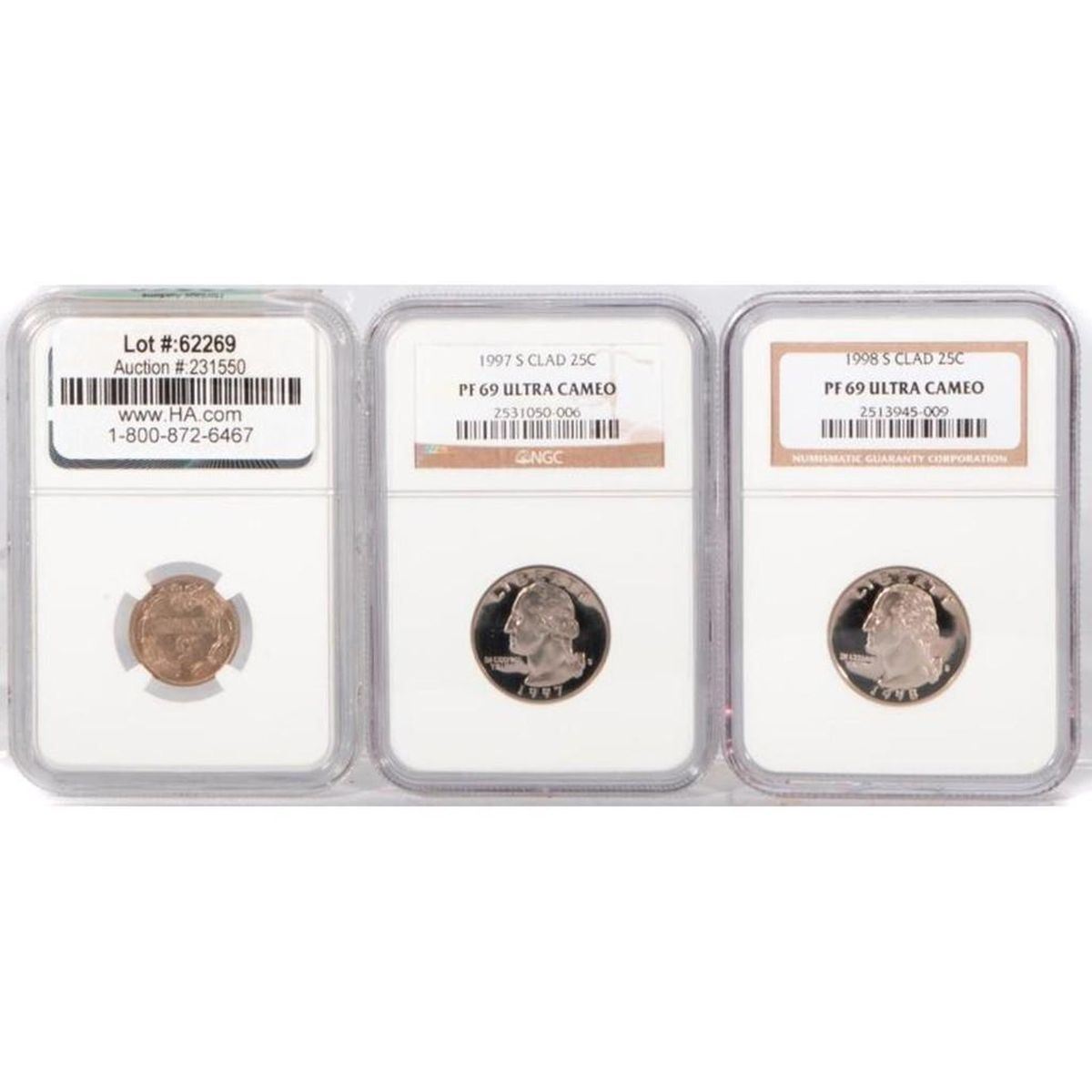 1997 SWASHINGTON QUARTERS PF 69 Ultra Cameo, 1998 S WASHINGTON QUARTER PF 69 Ultra Cameo and 1938 Venezuela: Republic 5 Centimos 1938 MS64. -