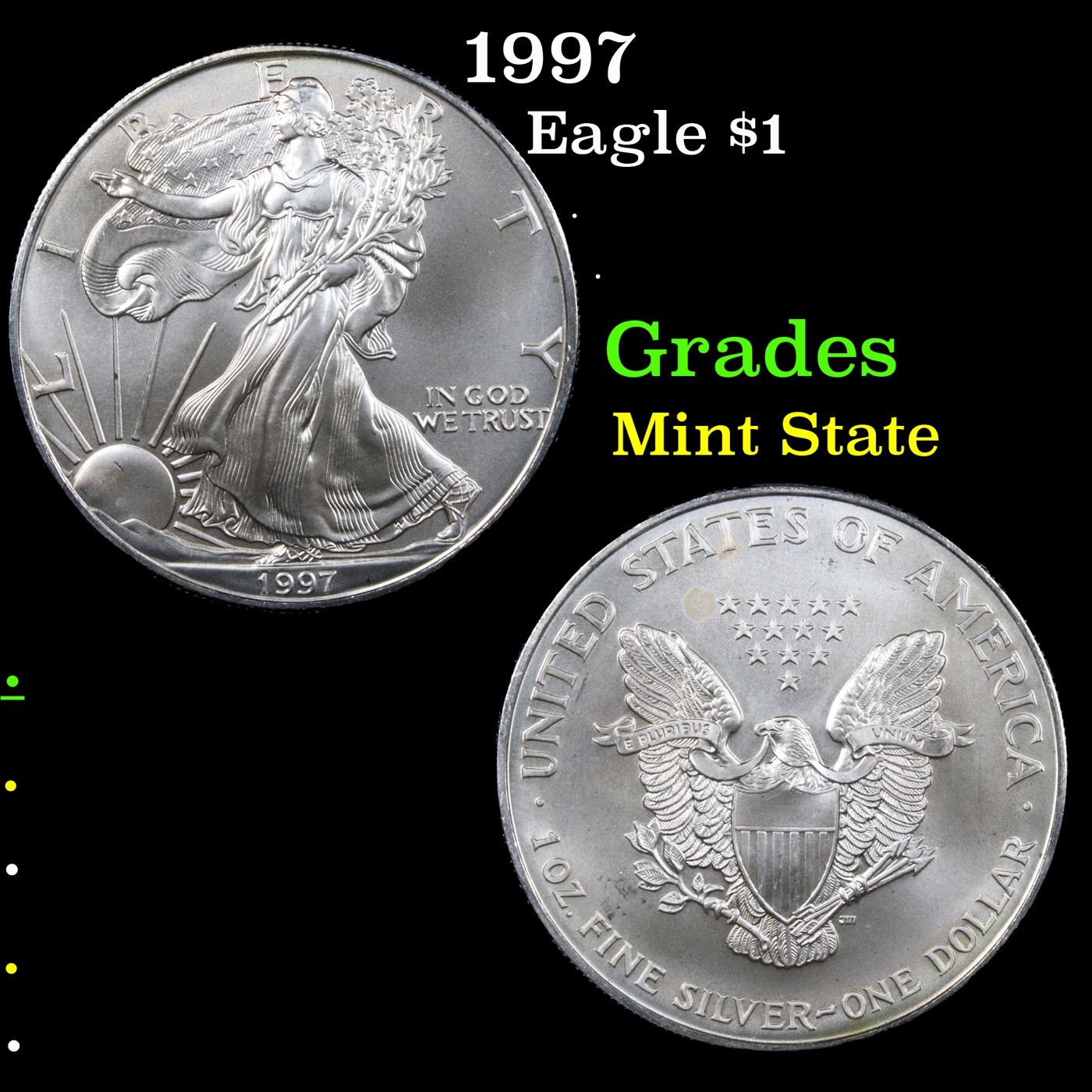 1997 Silver Eagle Dollar $1 Grades Mint State.