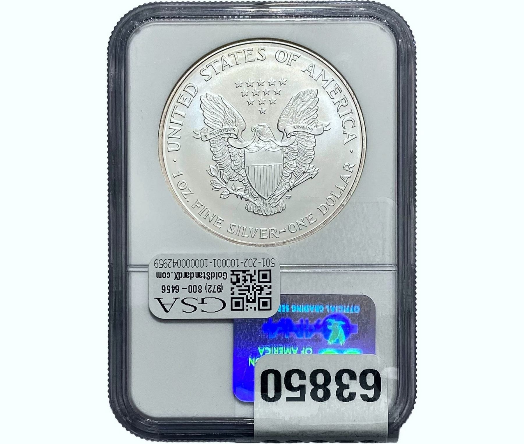 e. Coins sold referencing a third-party grading service are sold “AS IS” without any express or implied warranty, except for a guarantee by GSA that they are genuine. Removal or alteration of the holder, voids all of Bidder’s claims concerning that Product. Certain warranties may be available from the grading services and Bidders are referred to them for further details: Numismatic Guaranty Corporation (NGC), PO Box 4776, Sarasota, FL 34230, www.ngccoin.com/services/writtenguarantee.asp; Professional Coin Grading Services (PCGS), PO Box 9458, Newport Beach, CA 92658, www.pcgs.com/guarantee.html; ANACS, 6555 S. Kenton St., Ste. 303, Englewood, CO 80111; and Independent Coin Grading Co. (ICG), 7901 East Bellview, Ave., Suite 50, Englewood, CO 80111.