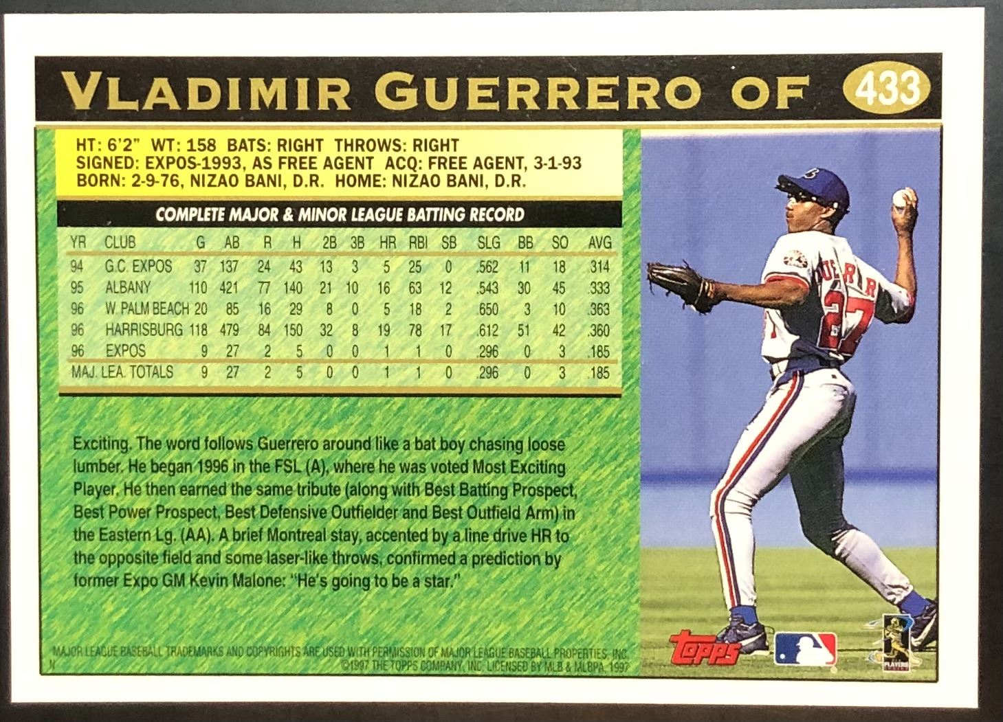 Card #433 MLB, baseball, hall of fame, rookie