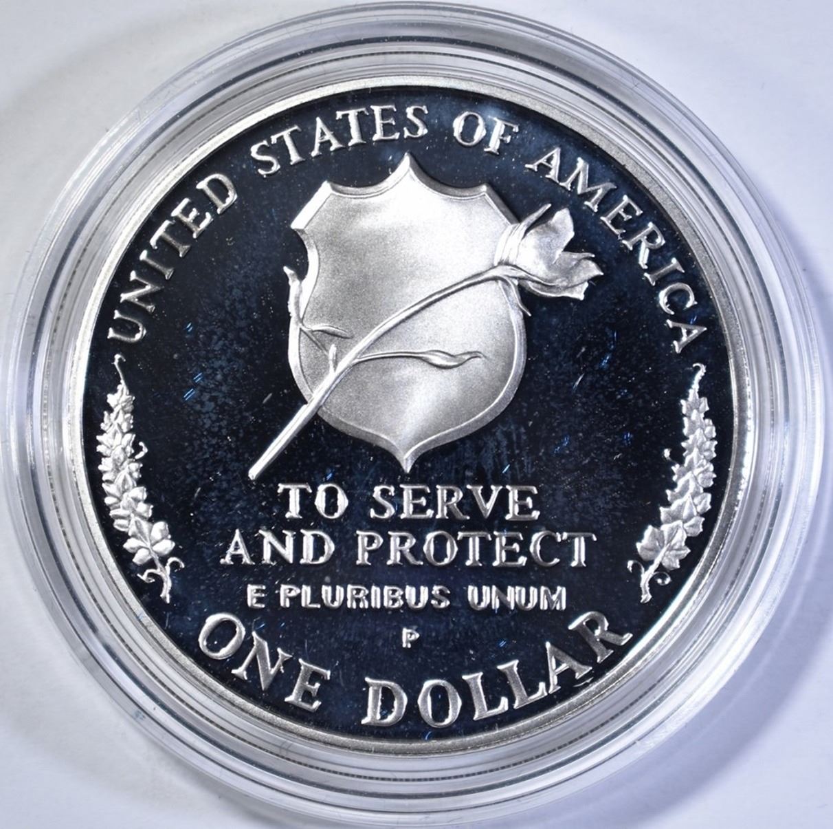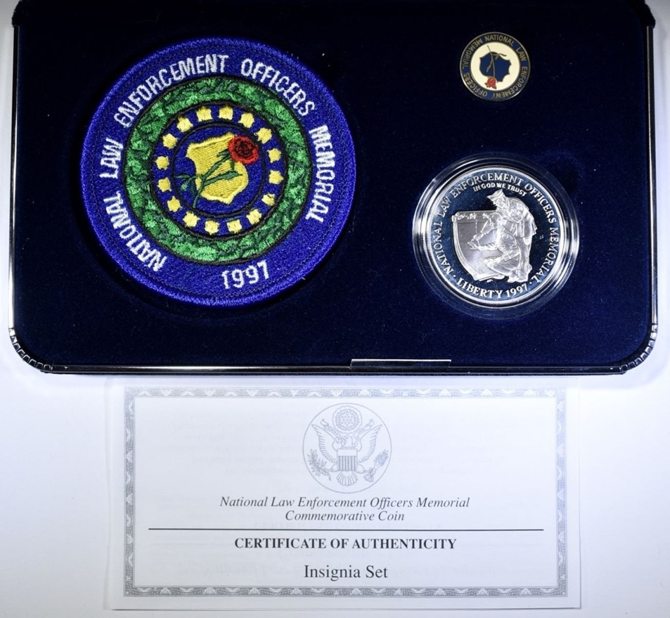 ORIGINAL PACKAGING PROOF COMMEM SILVER DOLLAR, PATCH & PIN MINTAGE 19045 ESTIMATE $150 - $175.