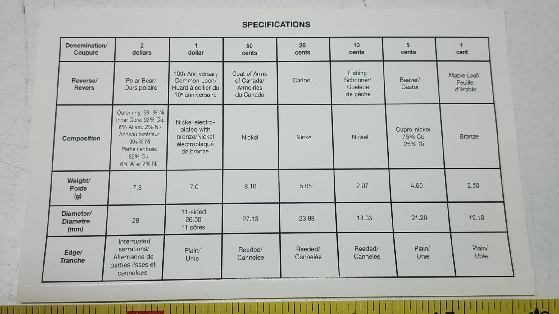 1997 UNC 7 coin specimen year set - 1987-1997 loonie