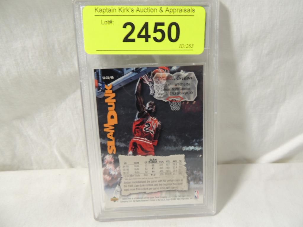 1997-98 UPPER DECK SLAM DUNK #22 MICHAEL JORDAN GRADED GEM MINT BY ADVANCED GRADING BASKETBALL PLAYER CARD. TRADING CARDS. COLLECTIBLE. GOOD CONDITION. IN CASE. SPORTS MEMORABILIA. AS SHOWN. SEE PHOTO FOR MORE DETAILS.
