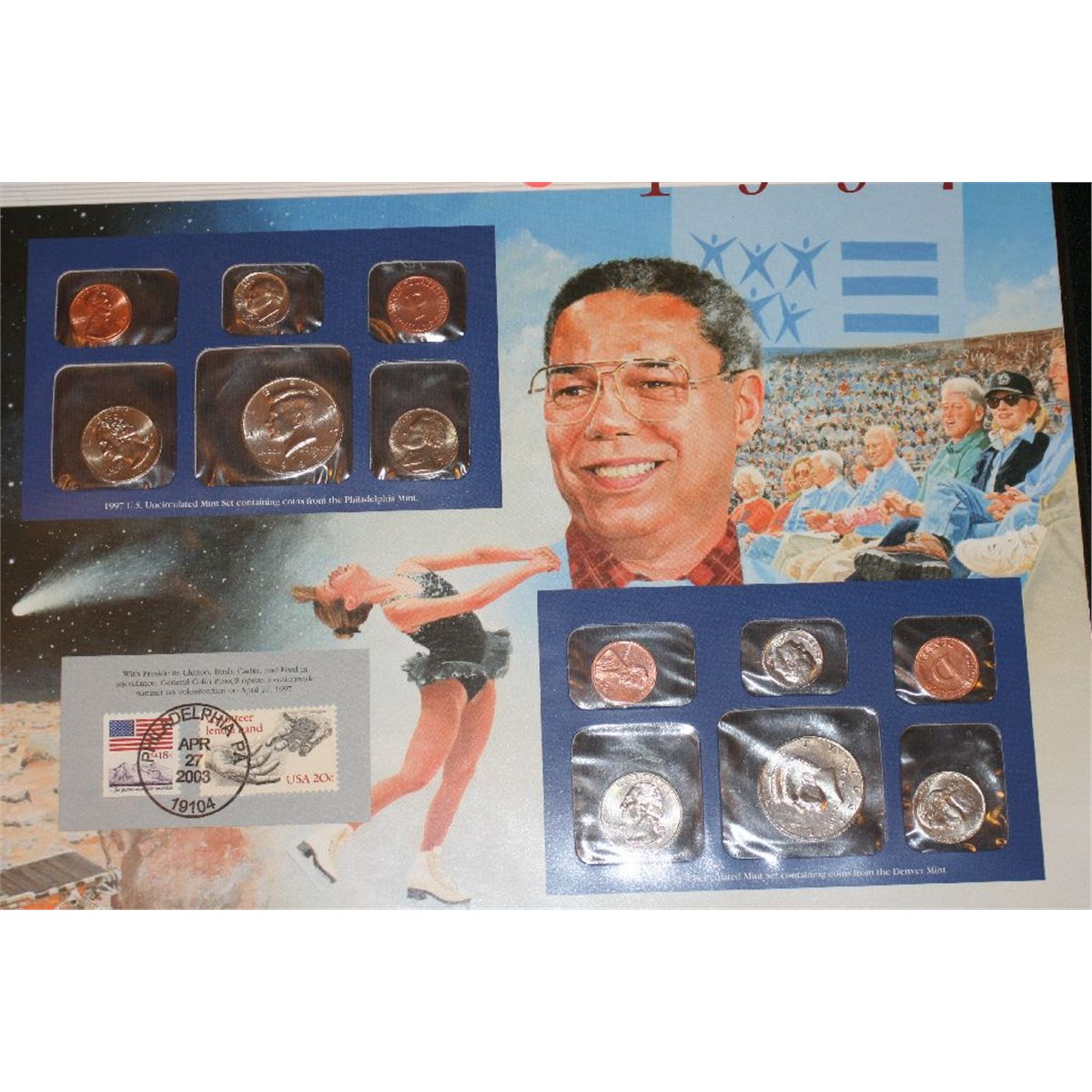 1997 US UNC Mint Set Panel from Philadelphia & Denver and Stamp set
