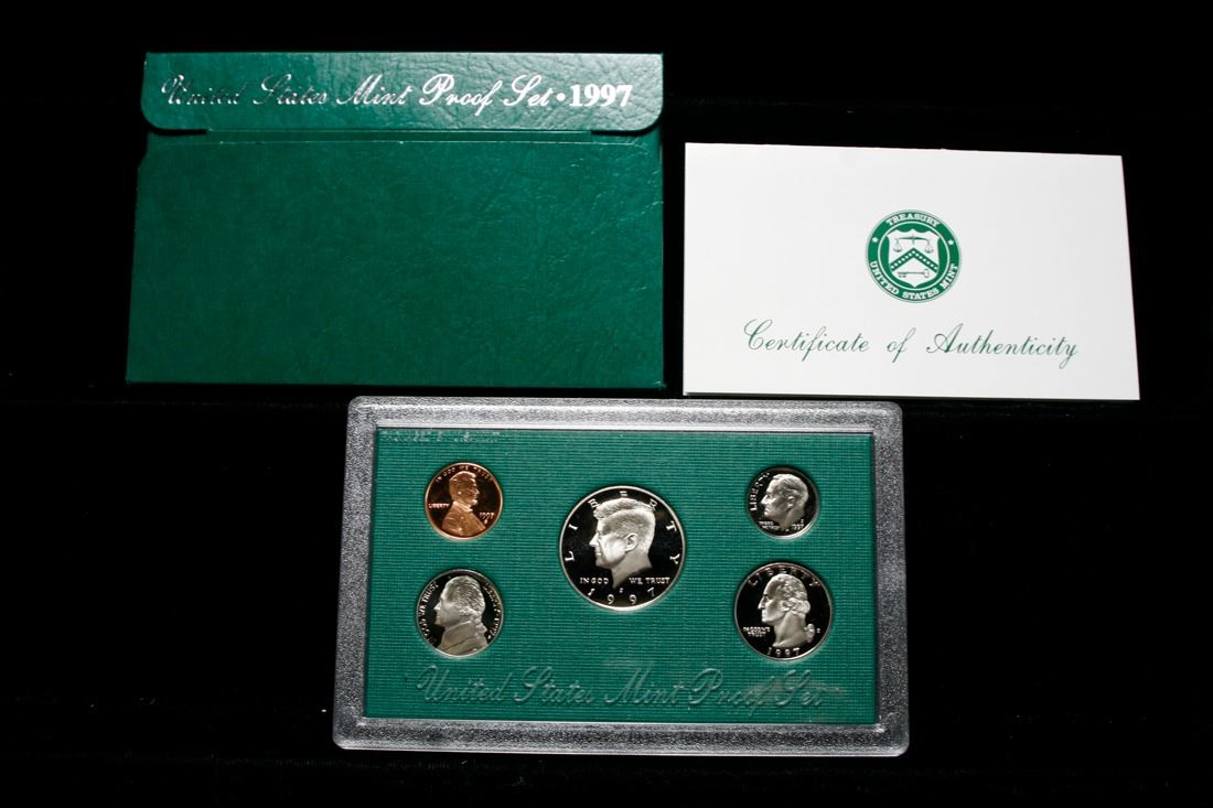1997 United States Mint Proof Set. Includes 5 Very Deep Cameo Proof Coins in the original Mint Packaging and with the COA. A scarcer set and much higher priced set, check your price guides.