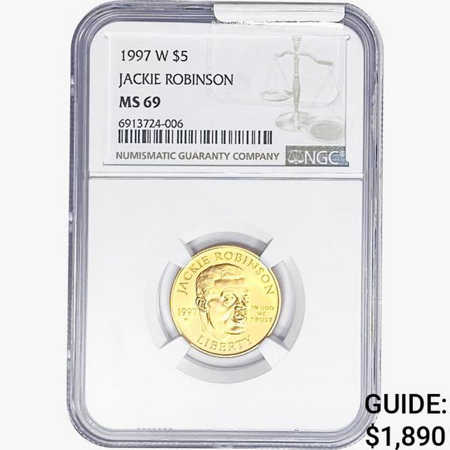 1997-W 0.242oz Gold $5-Jackie Robinson NGC MS69