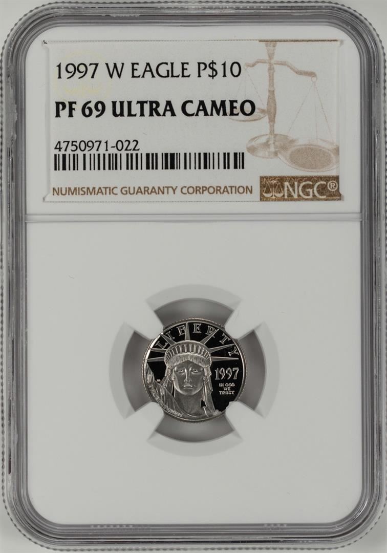 One 1997-W $10 Proof Platinum American Eagle Coin NGC PF69 Ultra Cameo. NGC Certified.