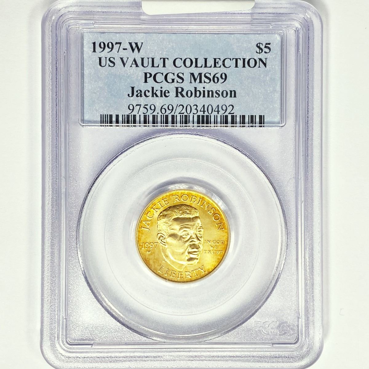 1997-W $5 8.36g Jackie Robinson Gold PCGS MS69