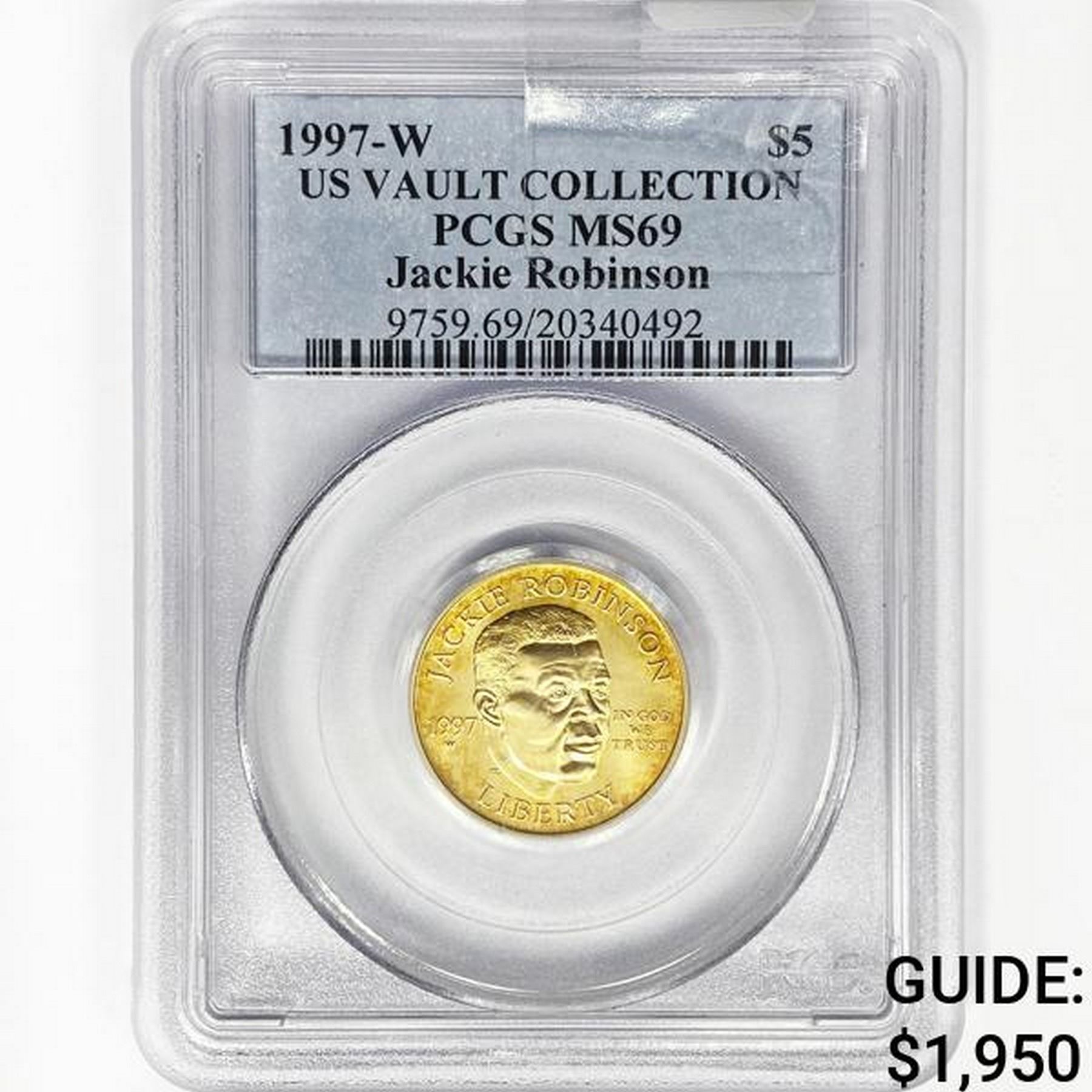 1997-W $5 8.36g Jackie Robinson Gold PCGS MS69