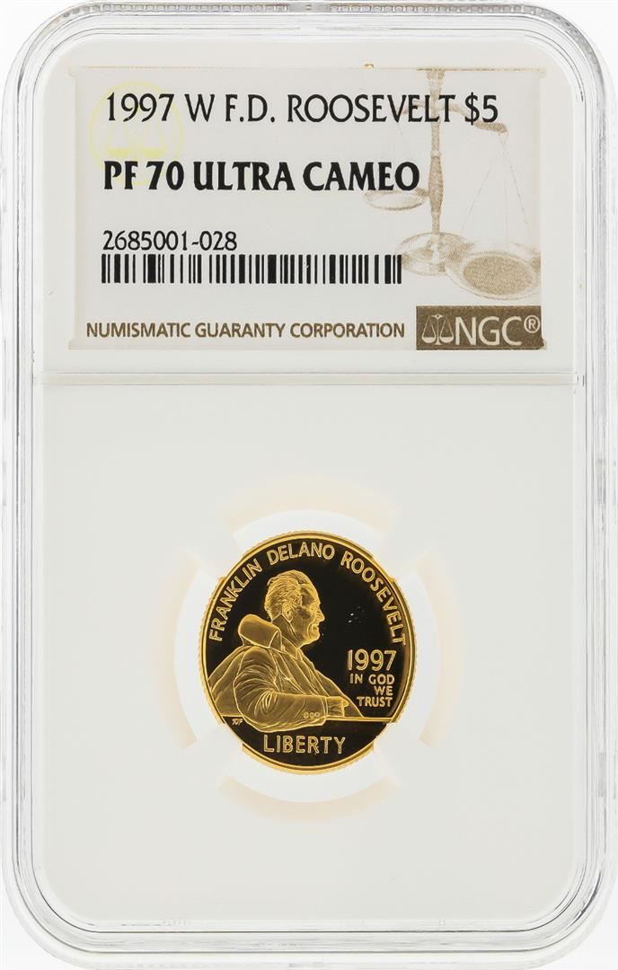 One 1997-W $5 F.D. Roosevelt Gold Coin NGC Graded PF70 Ultra Cameo. NGC Certified.