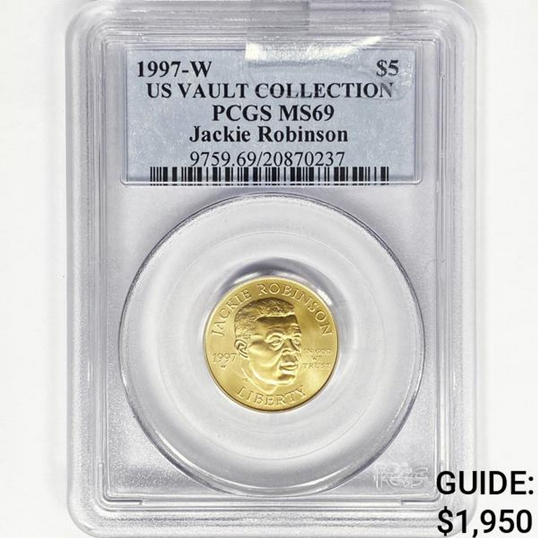1997-W $5 J. Robinson 8.4g Gold PCGS MS69