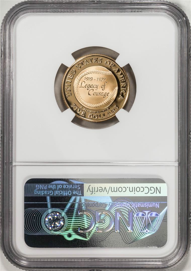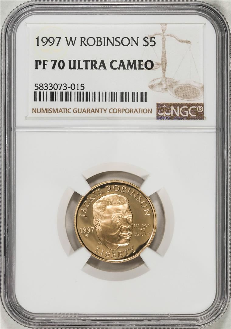One 1997-W $5 Jackie Robinson Proof Commemorative Gold Coin NGC PF70 Ultra Cameo. NGC Certified.