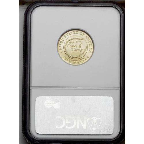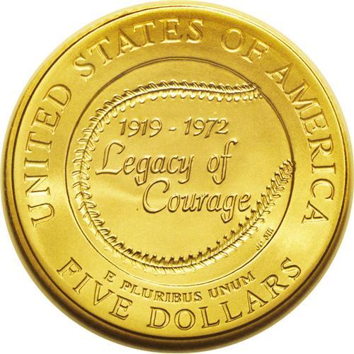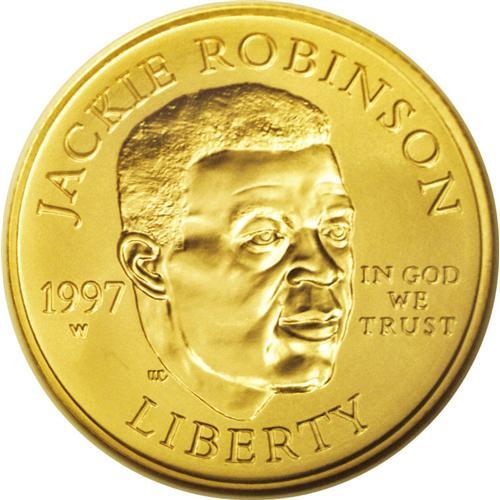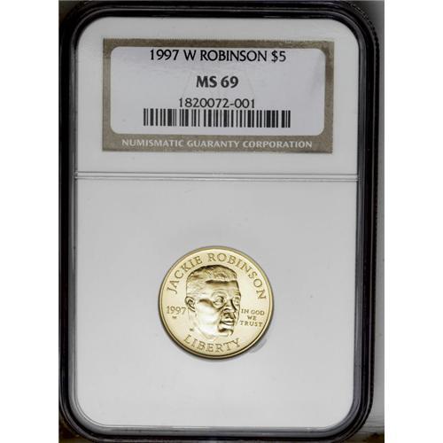 <B>1997-W<G$5> Jackie Robinson Gold Five Dollar MS69 NGC.</B></I> Light gold color with flashy luster and essentially flawless surfaces. Razor-sharp and gorgeous. The key issue to the modern gold commemorative series.