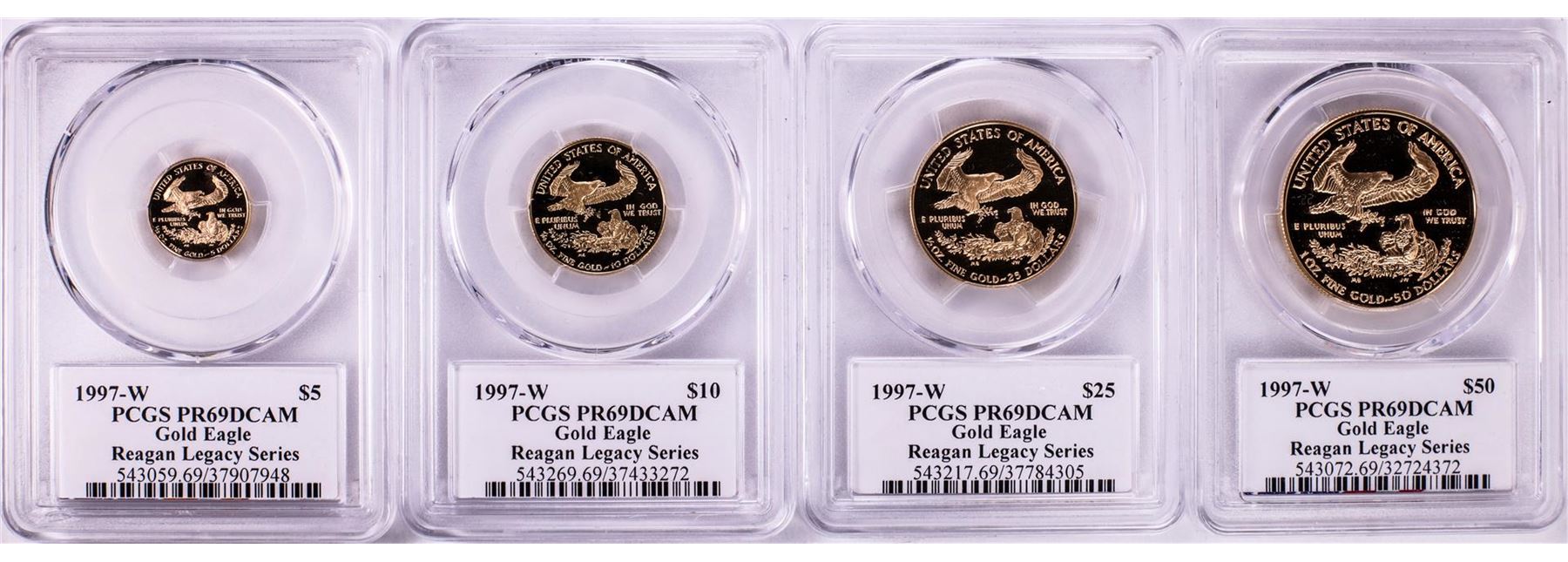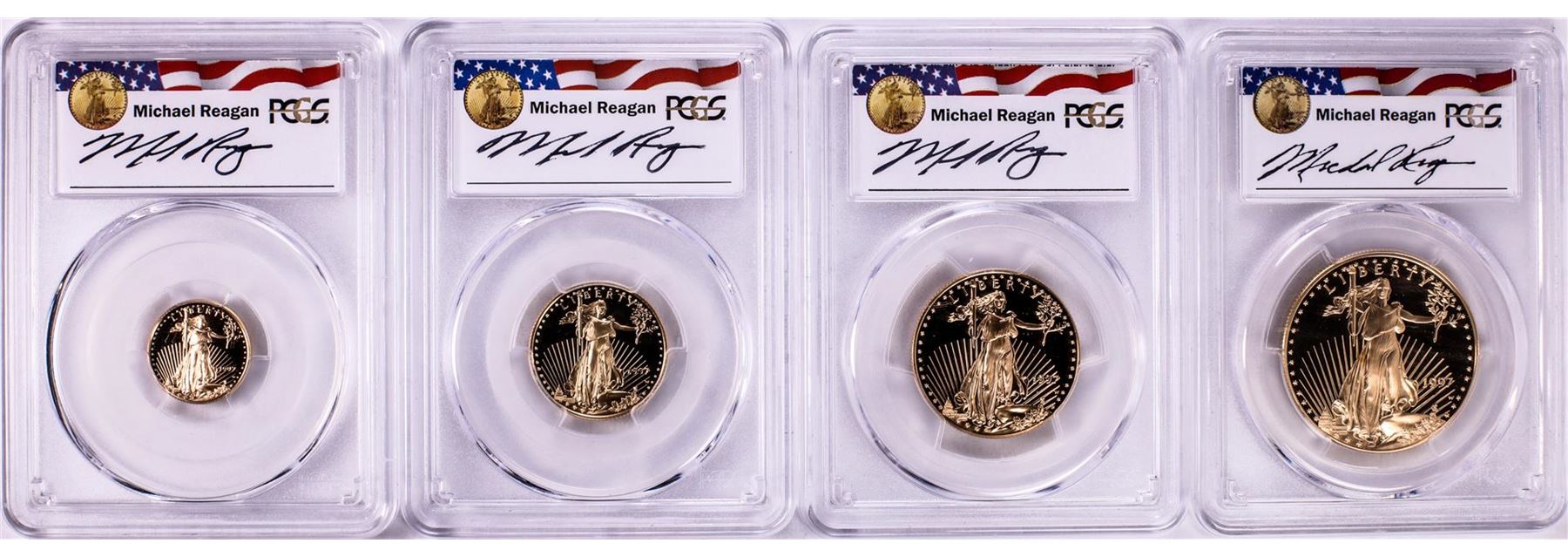 One 1997-W Proof American Gold Eagle (4) Coin Set PCGS PR69DCAM Michael Reagan Signature. PCGS Graded.