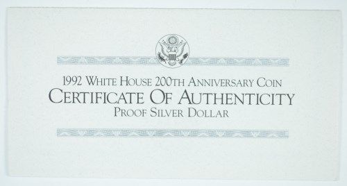 1997 WHITE HOUSE 200Th ANNIVERSARY PROOF SILVER DOLLAR, ORIG. BOX ,SLEEVE/CERT