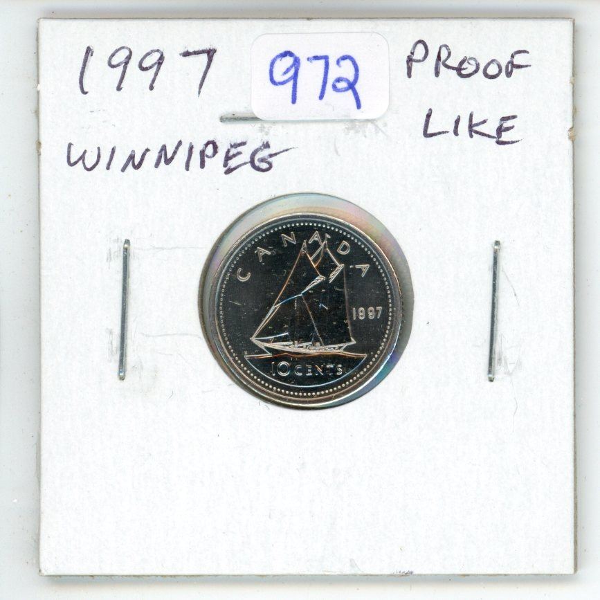 1997 Winnipeg 10 Cents. From a Proof Like Set. PL-65. Lustrous.