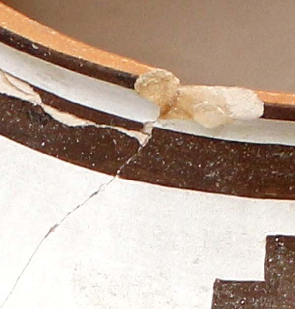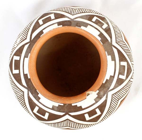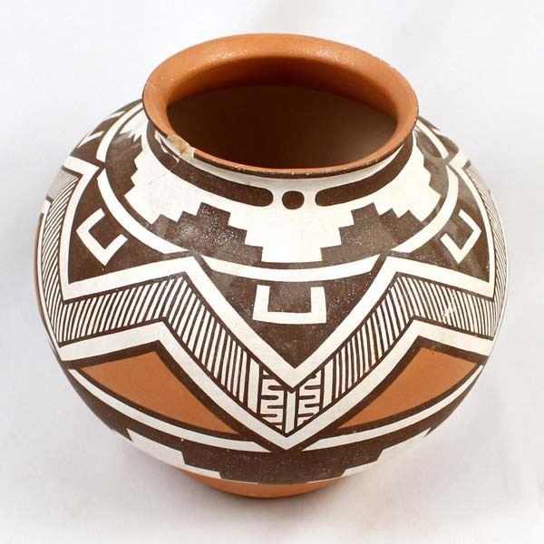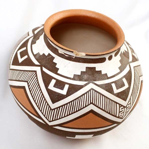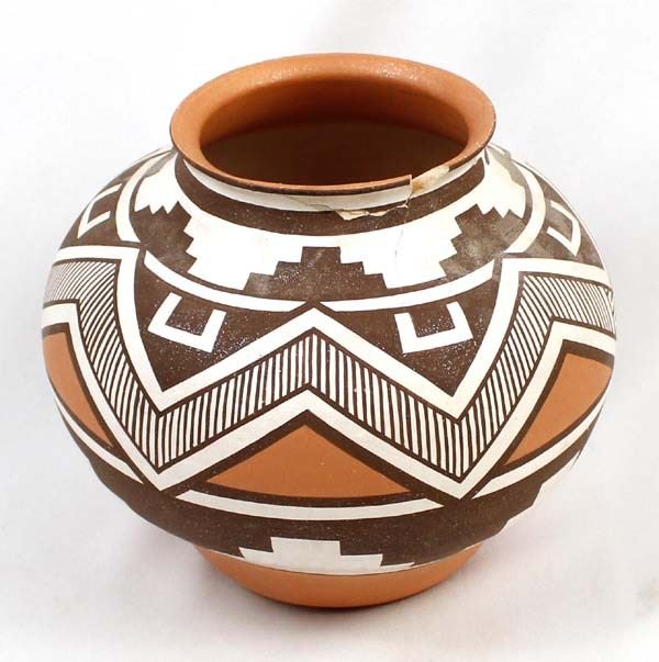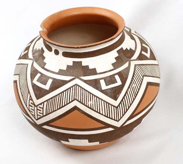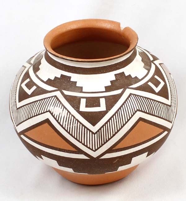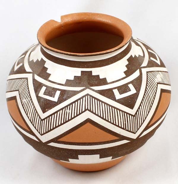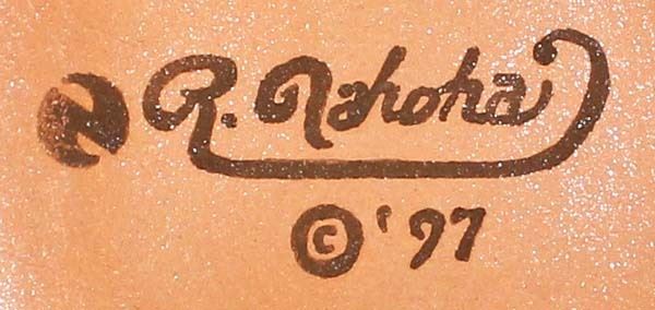 1997 Native American Zuni Micaceous Clay Pottery Bowl by Randy Nahohai, measures 7'' x 7.5'' and is signed on the bottom, chip and pressure crack in rim, FYI: ''Randy Nahohai was born into the Eagle Clan at Zuni Pueblo. Taught the traditional art of making pottery by his mother, Josephine Nahohai, Randy had been actively producing pottery since about 1983. Randy shared his pottery studio, Nahohai Clayworks, with his brother Milford. His favorite motifs were long-haired Katsinas, deer with heart lines, water serpents, kokopeli, dragonflies and frogs. Sadly, Randy passed on in March, 2016.''