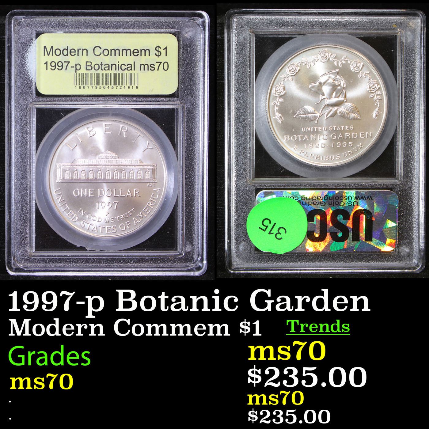 1997-p Botanic Garden Modern Commem Dollar $1 Graded ms70, Perfection By USCG. The 1997 Botanic Gardens Silver Dollar was issued for the National Botanic Garden in Washington, DC. Based on the inscriptions the occasion was for the 165th anniversary, which took place two years prior in 1995. Encapsulated and graded ms70 by USCG