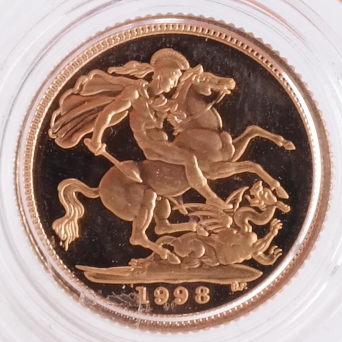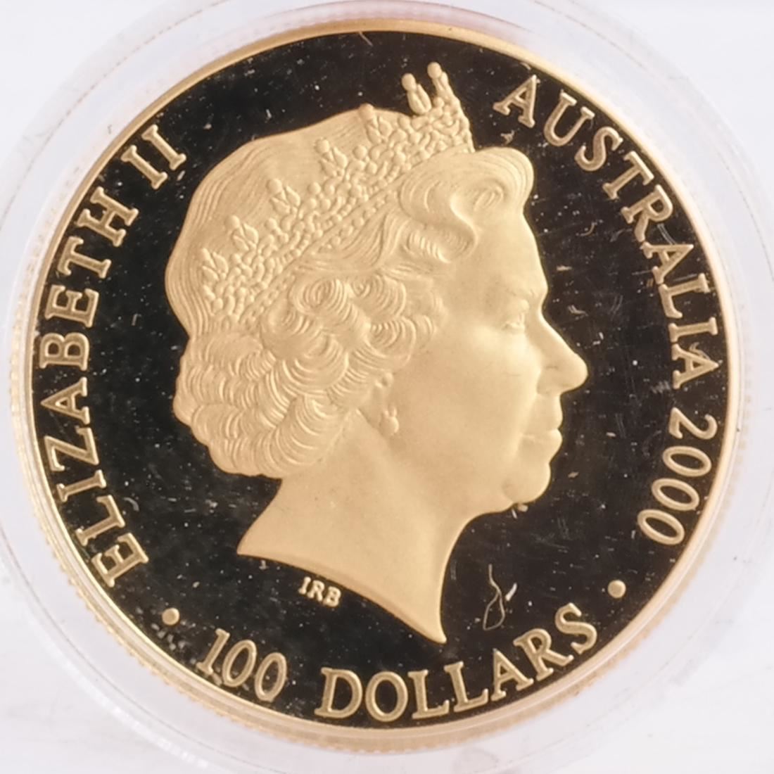 1998-Proof 1/2 Sovereign; 2000 Australian $100 gold proof.