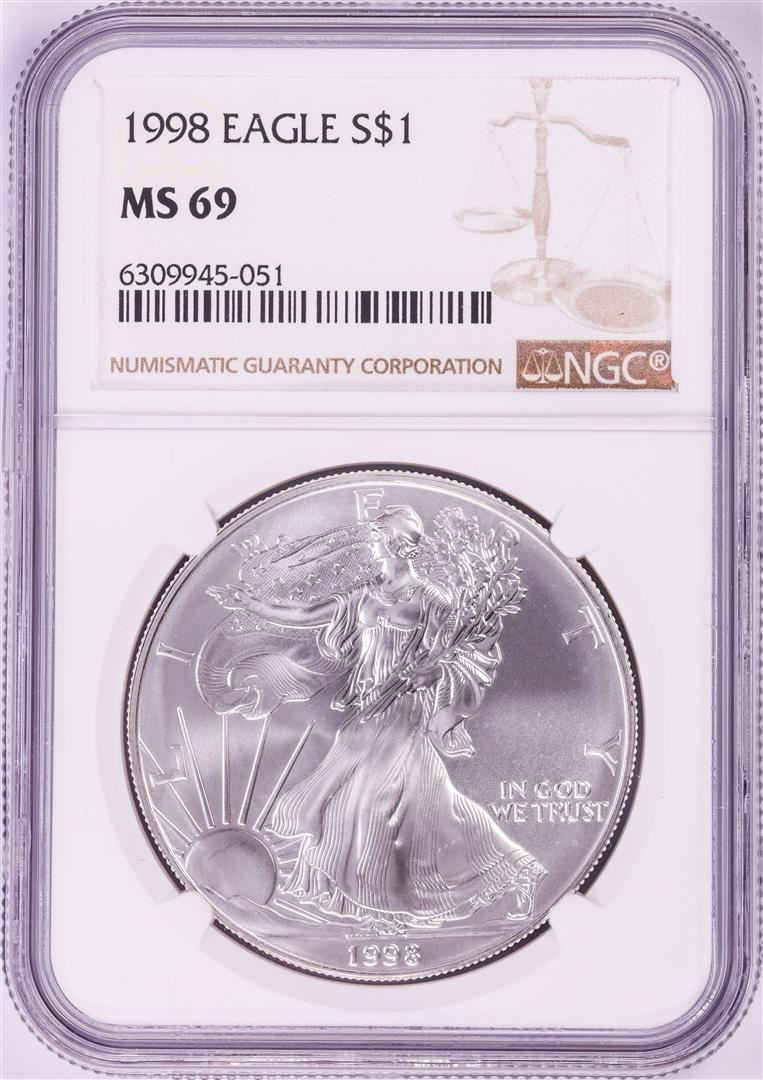 One 1998 $1 American Silver Eagle Coin NGC MS69. NGC Certified.