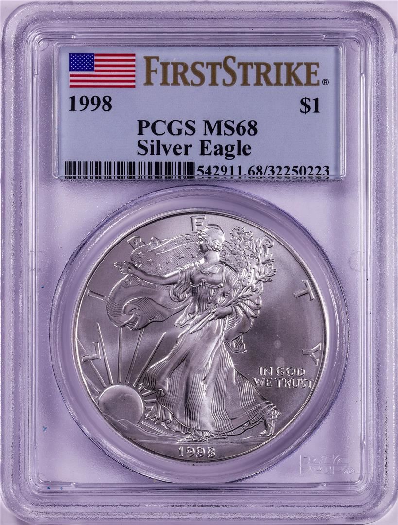 One 1998 $1 American Silver Eagle Coin PCGS MS68 First Strike. PCGS Graded.