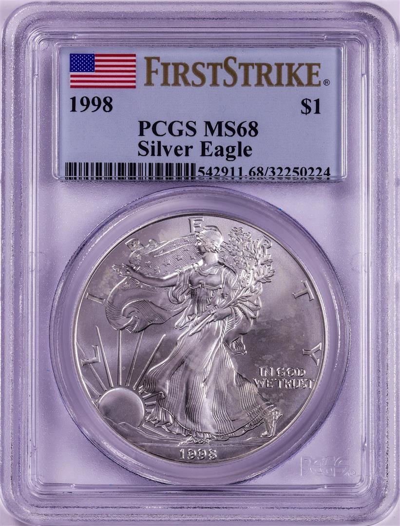 One 1998 $1 American Silver Eagle Coin PCGS MS68 First Strike. PCGS Graded.