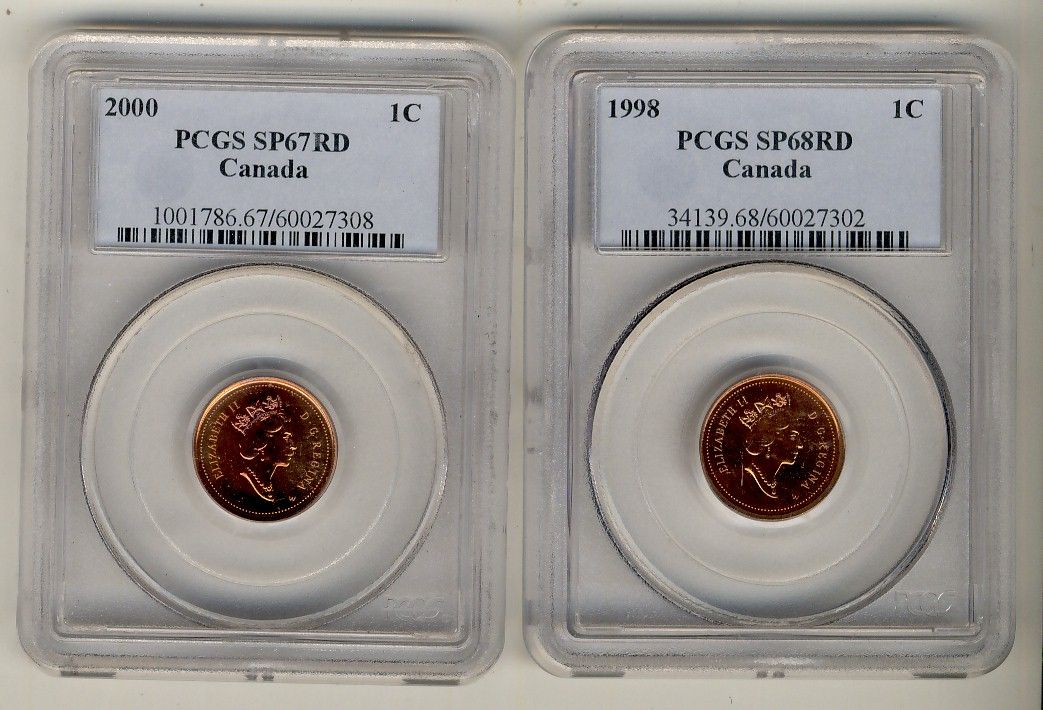 1998 1¢ SP68 & 2000 SP67 PCGS Red. Lot of 2 coins.