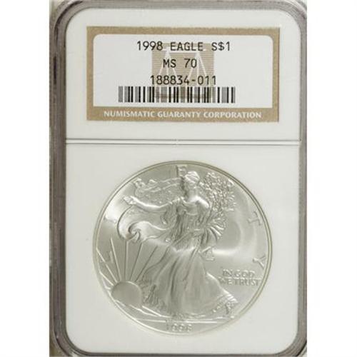 1998 $1 Silver Eagle MS70 NGC. NGC Census: (211/0)