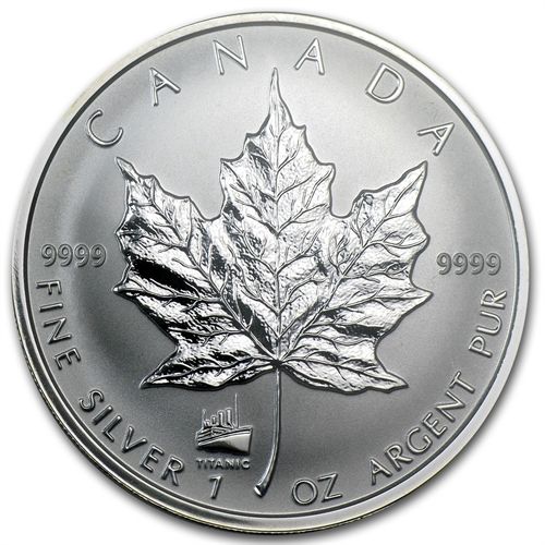 1998 1 oz Silver Canadian Maple Leaf - Titanic Privy SP **|**|** Year: 1998 ; Mint Mark: Specimen Gem BU ; Denomination: $5 ; MSRP: $100