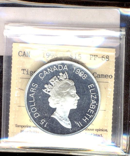 1998 $15 Tiger ICCS PF68 Ultra Hvy Cameo.