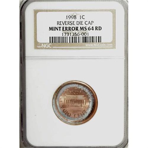 <B>1998 1C Cent--Reverse Die Cap--MS64 Red NGC.</B></I> <BR><BR><B>Coin Engraver:</B> Victor D. Brenner<BR><BR><b>Shipping:</b> Coins & Currency (<a target="_blank" href="http://www.heritageauctions.com/common/shipping.php">view shipping information</a>)
