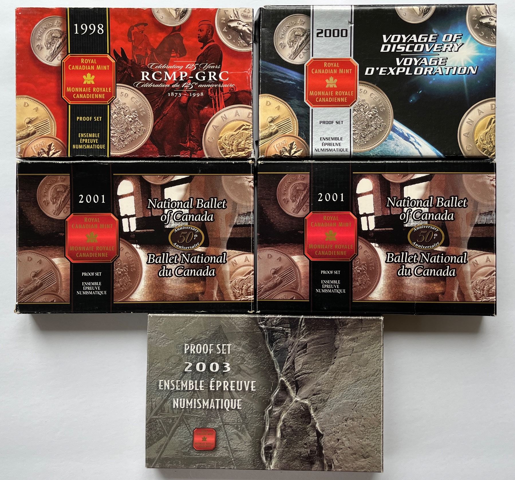 Includes: 1998, 2000, 2x 2001, 2003. 5 pcs.