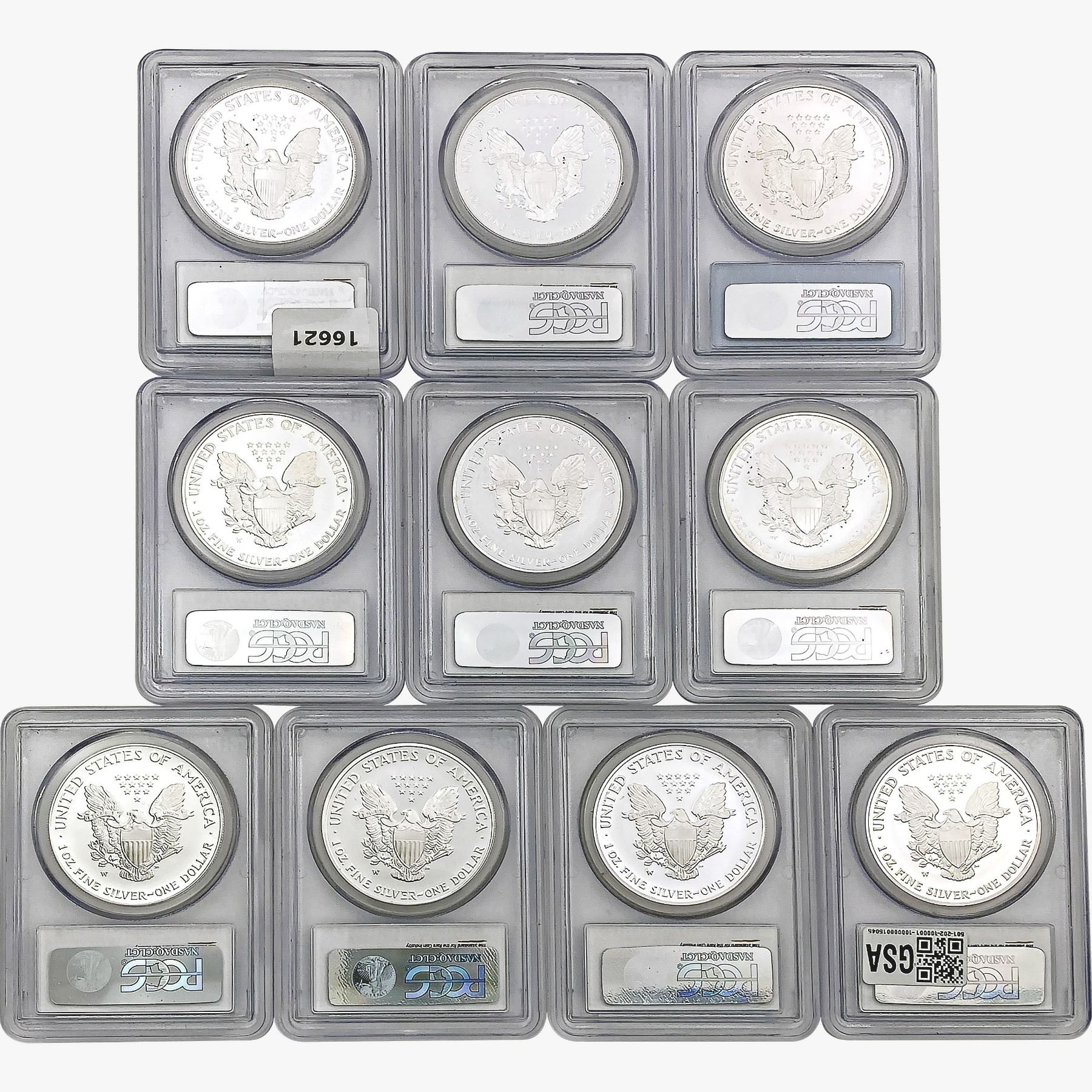 e. Coins sold referencing a third-party grading service are sold “AS IS” without any express or implied warranty, except for a guarantee by GSA that they are genuine. Removal or alteration of the holder, voids all of Bidder’s claims concerning that Product. Certain warranties may be available from the grading services and Bidders are referred to them for further details: Numismatic Guaranty Corporation (NGC), PO Box 4776, Sarasota, FL 34230, www.ngccoin.com/services/writtenguarantee.asp; Professional Coin Grading Services (PCGS), PO Box 9458, Newport Beach, CA 92658, www.pcgs.com/guarantee.html; ANACS, 6555 S. Kenton St., Ste. 303, Englewood, CO 80111; and Independent Coin Grading Co. (ICG), 7901 East Bellview, Ave., Suite 50, Englewood, CO 80111.