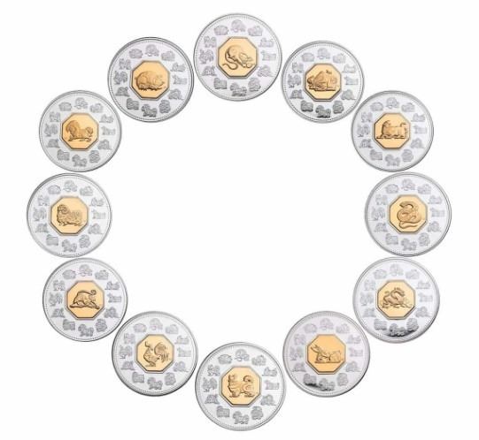 1998-2009 $15 Complete Lunar Calendar Coin Set - Lot of 12 coins (Tiger to Ox) each in its original red box.
