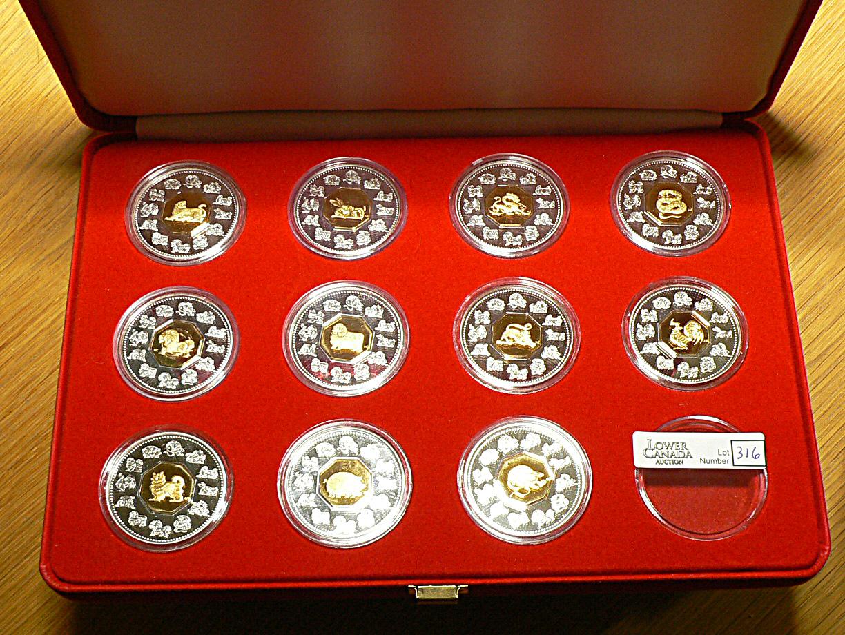 1998 - 2009, Chinese Lunar set, $15.00 Silver coins, Complete but missing Ox 2009, with Red Velvet Case.
