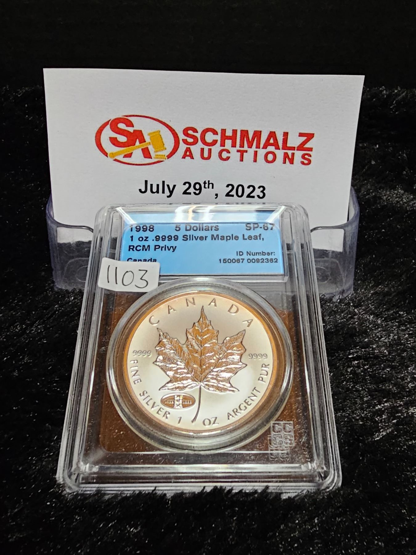 1998 $5.00 1 oz .9999 silver Maple Leaf RCM Privy CCCS graded SP-67