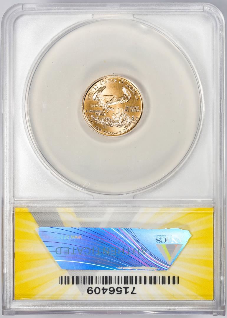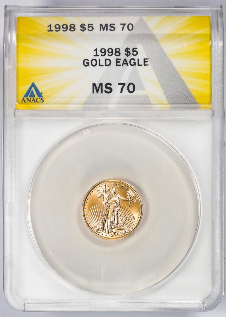 One 1998 $5 American Gold Eagle Coin ANACS MS70. ANACS Certified.
