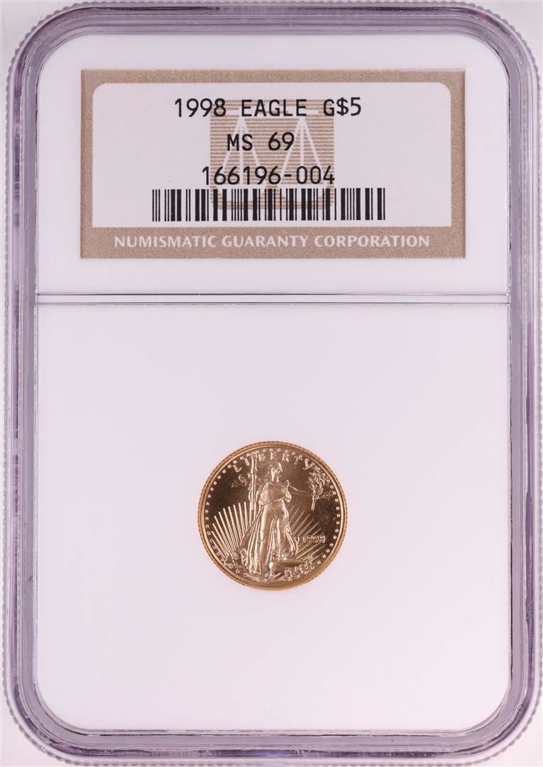 One 1998 $5 American Gold Eagle Coin NGC MS69. NGC Certified.