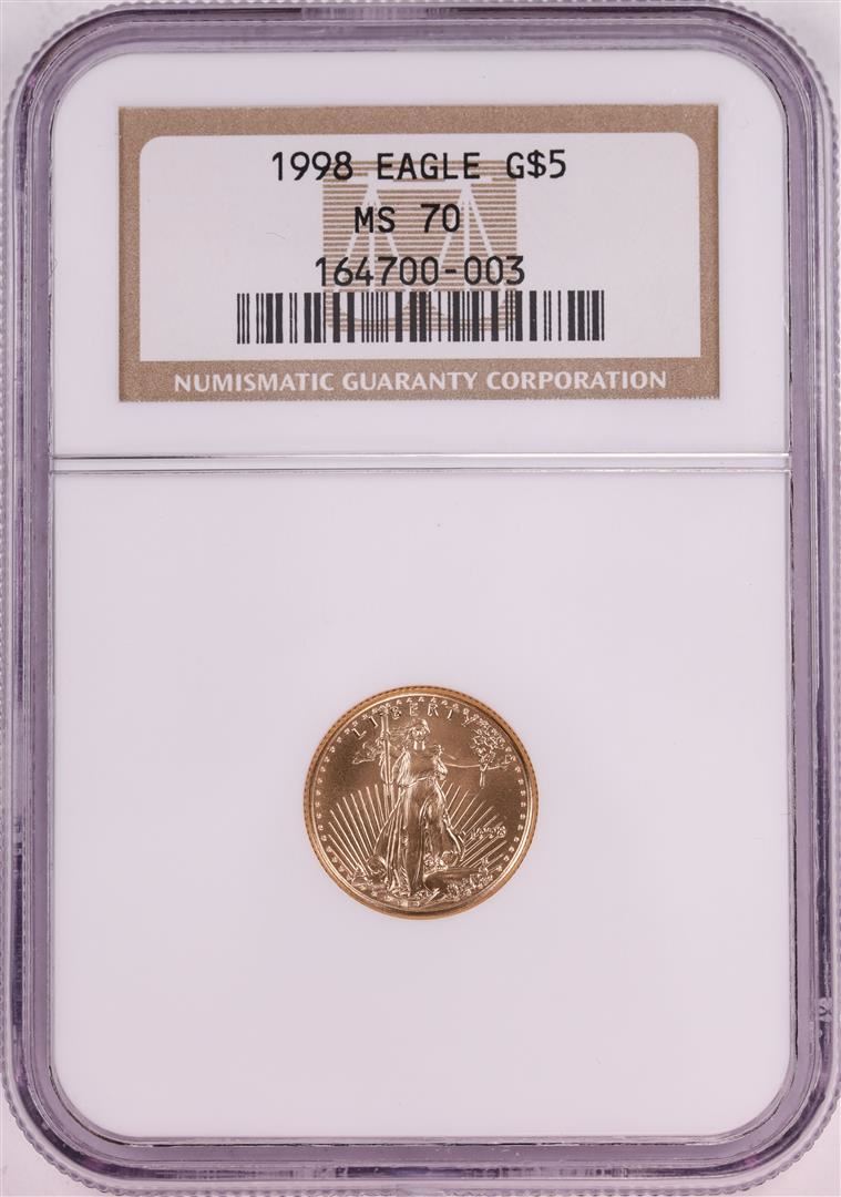One 1998 $5 American Gold Eagle Coin NGC MS70. NGC Certified.