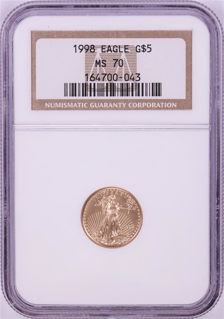 One 1998 $5 American Gold Eagle Coin NGC MS70. NGC Certified.