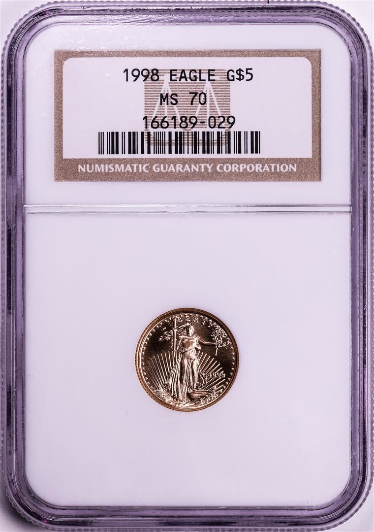 One 1998 $5 American Gold Eagle Coin NGC MS70. NGC Certified.