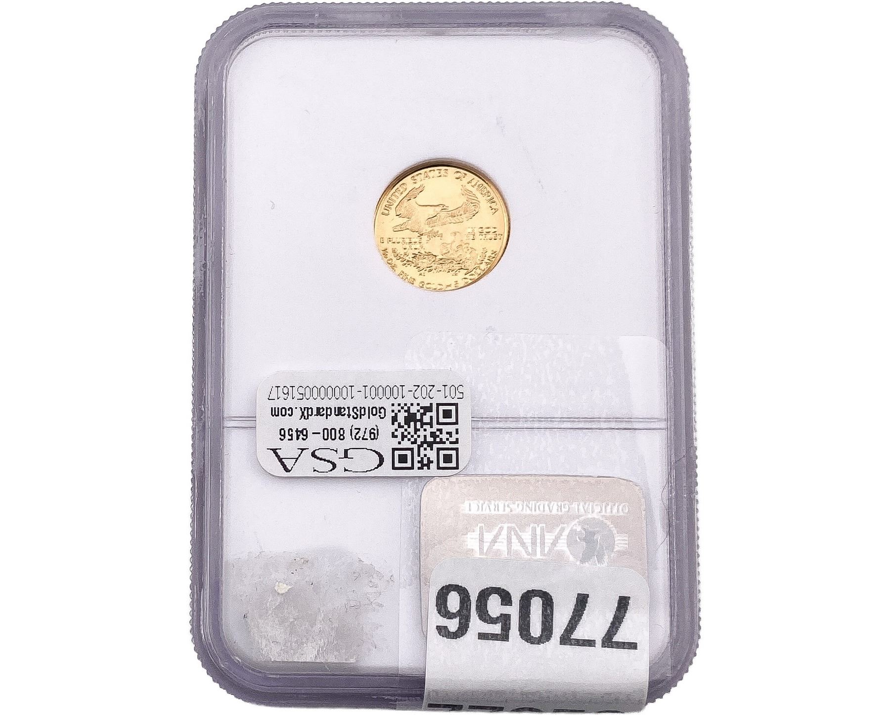 l. All non-certified coins and currency are guaranteed genuine, but are not guaranteed as to grade, since grading is a matter of opinion, an art and not a science, and therefore the description rendered by GSA or any third-party grading service may not agree with the opinion of others (including trained experts), and the same expert may not grade the same item with the same grade at two different times. GSA may, but is not obligated to, express an opinion as to non-certified numismatic items, in GSA’s opinion, or by its employees’ experience and the current interpretation of the American Numismatic Association’s standards as of the date the catalog was prepared. There is no guarantee or warranty expressed or implied that the grading opinions utilized by GSA, if any, will meet the standards of any grading service at any time in the future.
