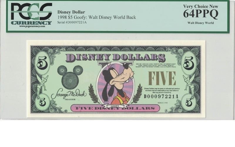 One 1998 $5 Goofy Disney Dollar PCGS 64PPQ.