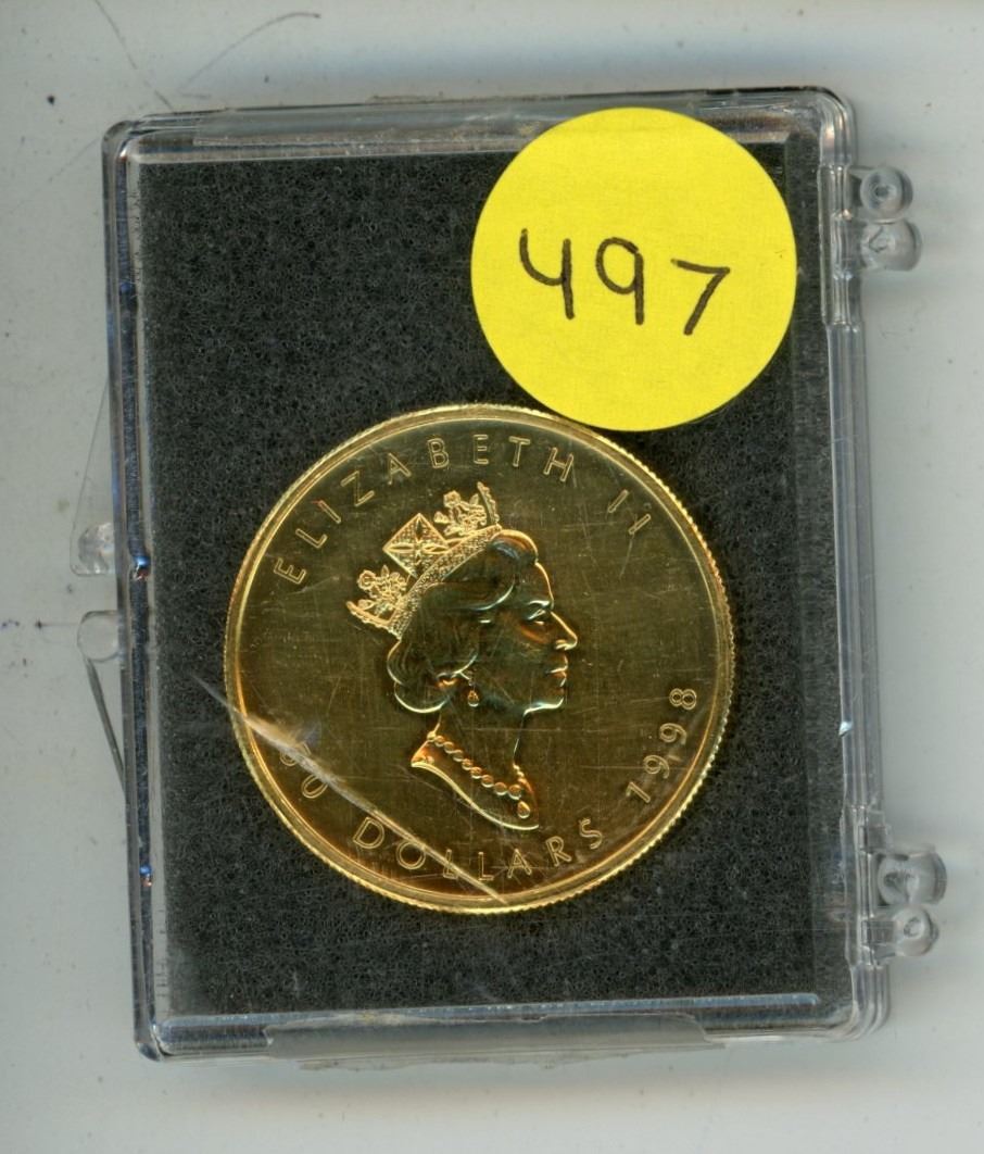 1998  $50.00, 1 OZ OR PUR Fine Gold Coin 9999. Hinge broken on container.