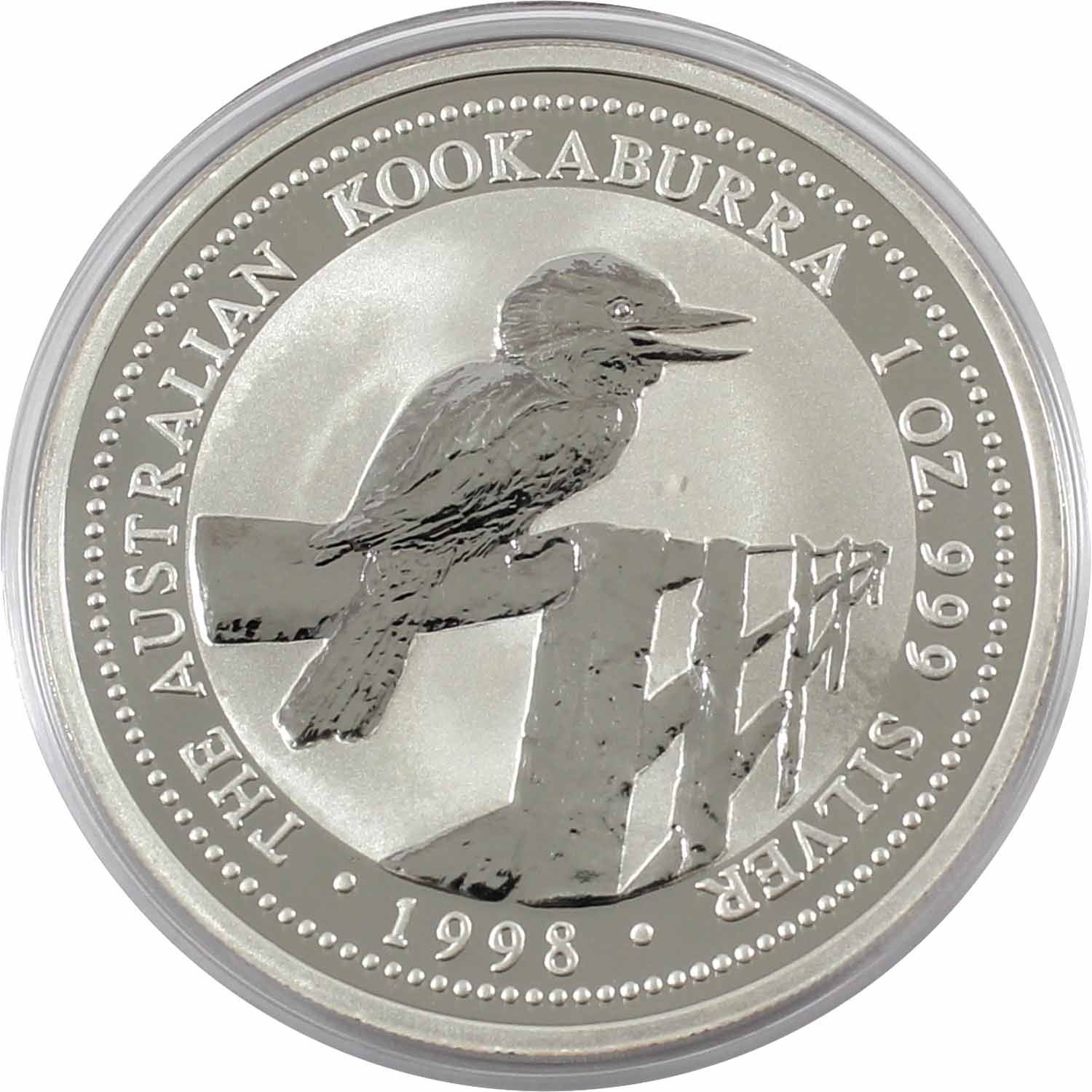 1998 Australia $5 1oz Kookaburra Fine Silver Coin in Capsule. Low mintage of only 103,119!!! (TAX Exempt)