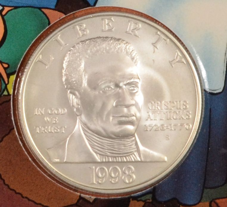 1998 BLACK REVOLUTIONARY WAR PATRIOTS UNC COMMEM. SILVER DOLLAR, YOUNG COLLECTOR